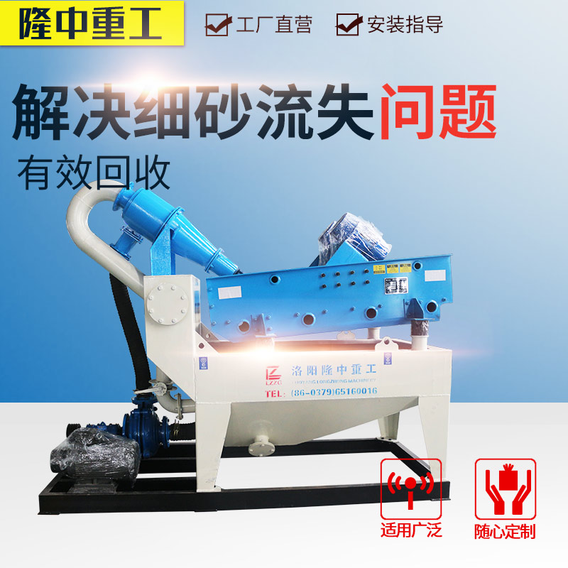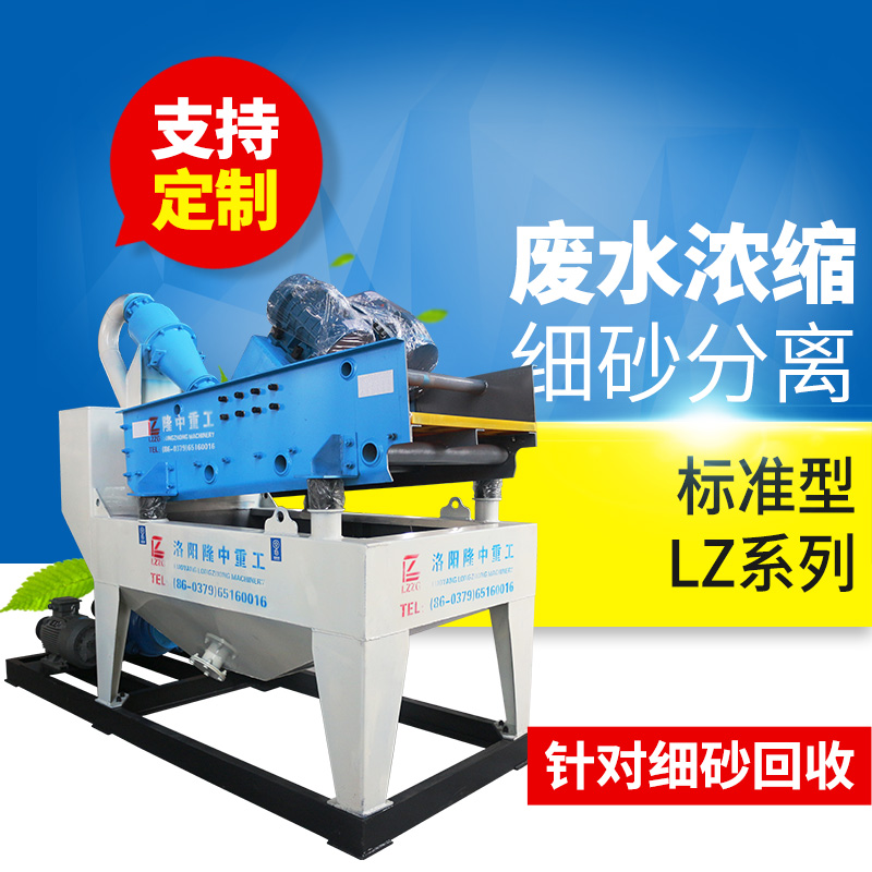 LZ系列細(xì)砂回收機工作過程:渣漿泵將砂水混合物高壓輸送至泥砂分離器,經(jīng)過高壓離心分級濃縮的細(xì)顆粒物料,經(jīng)沉砂嘴傳送給脫水篩,經(jīng)振動篩高頻脫水后,細(xì)砂與水有效分離,精品細(xì)沙由高頻脫水篩排入皮帶。污水、泥等雜物經(jīng)緩沖返料箱排入沉淀池。